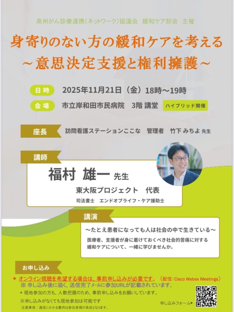 〜11月21日泉州がん診療連携(ネットワーク)協議会緩和ケア部会にて🎤〜